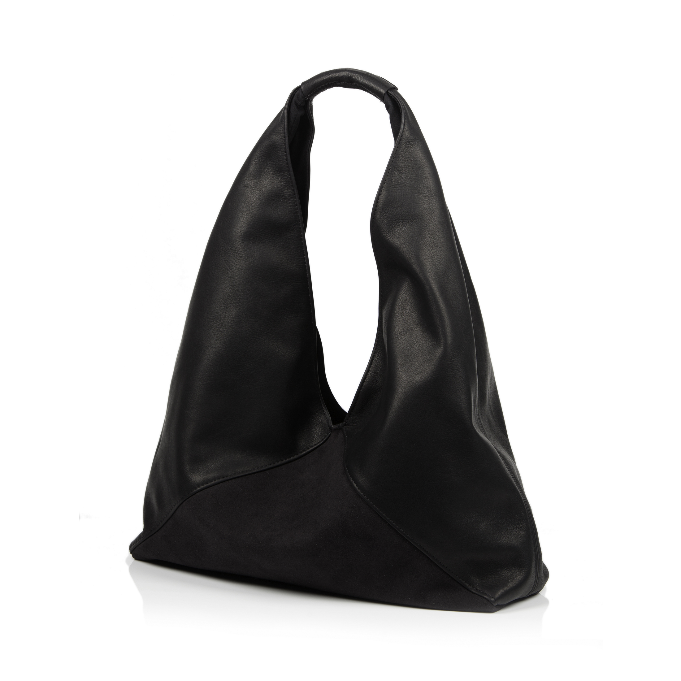 Introducing our latest shape The Augusta – a modern take on the classic 70’s hobo. An oversized slouchy sac that fits perfectly over the shoulder. The strategic placement of seams allows mixing of materials to create texture. The matte black waxy leather mixed with the luxe microsuede makes this the ideal bag for everyday use.